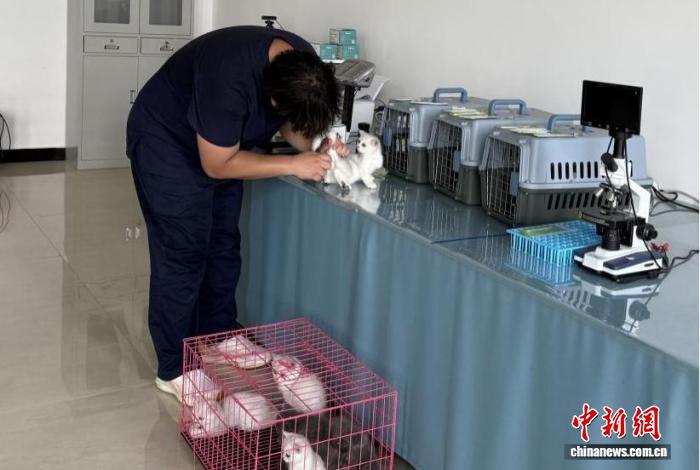 东北亚宠物交易中心工作人员正在给猫咪做检疫。苏家屯区委宣传部供图