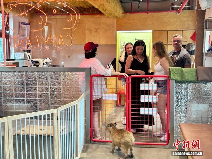 从猫咖、狗咖,再到水豚咖啡馆,特色宠物空间在主要城市兴起。在上海首家卡皮巴拉咖啡馆Capyland,两只8个月左右大的水豚“呆呆”和“土豆”正趴着吃草。一位客人蹲在旁边:“看它们嚼草能看走神,好像烦恼也被嚼碎了。”